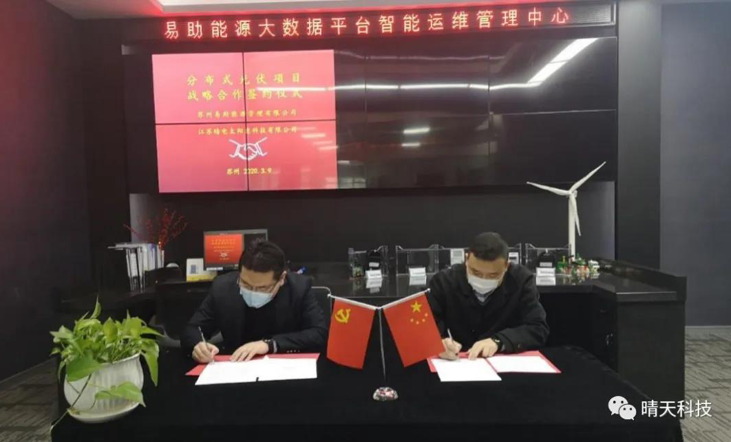 2020年3月9日上午,江苏晴电太阳能科技有限公司与苏州易助能源管理有限公司正式签署了《分布式光伏项目战略合作协议》。